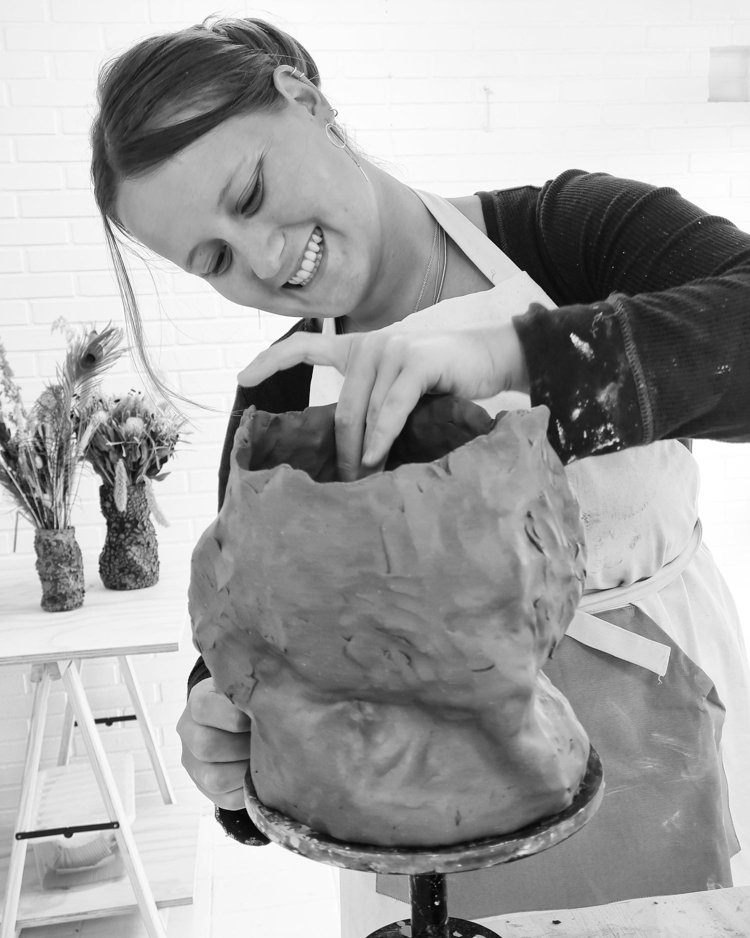 På mit værksted er der plads til det upræcise og uperfekte. Hvert et objekt jeg skaber, bliver formet med intuitionen i mine hænder og glasurens kemi i brændingerne. Jeg har aldrig fuldkommen kontrol over min proces - og det elsker jeg.